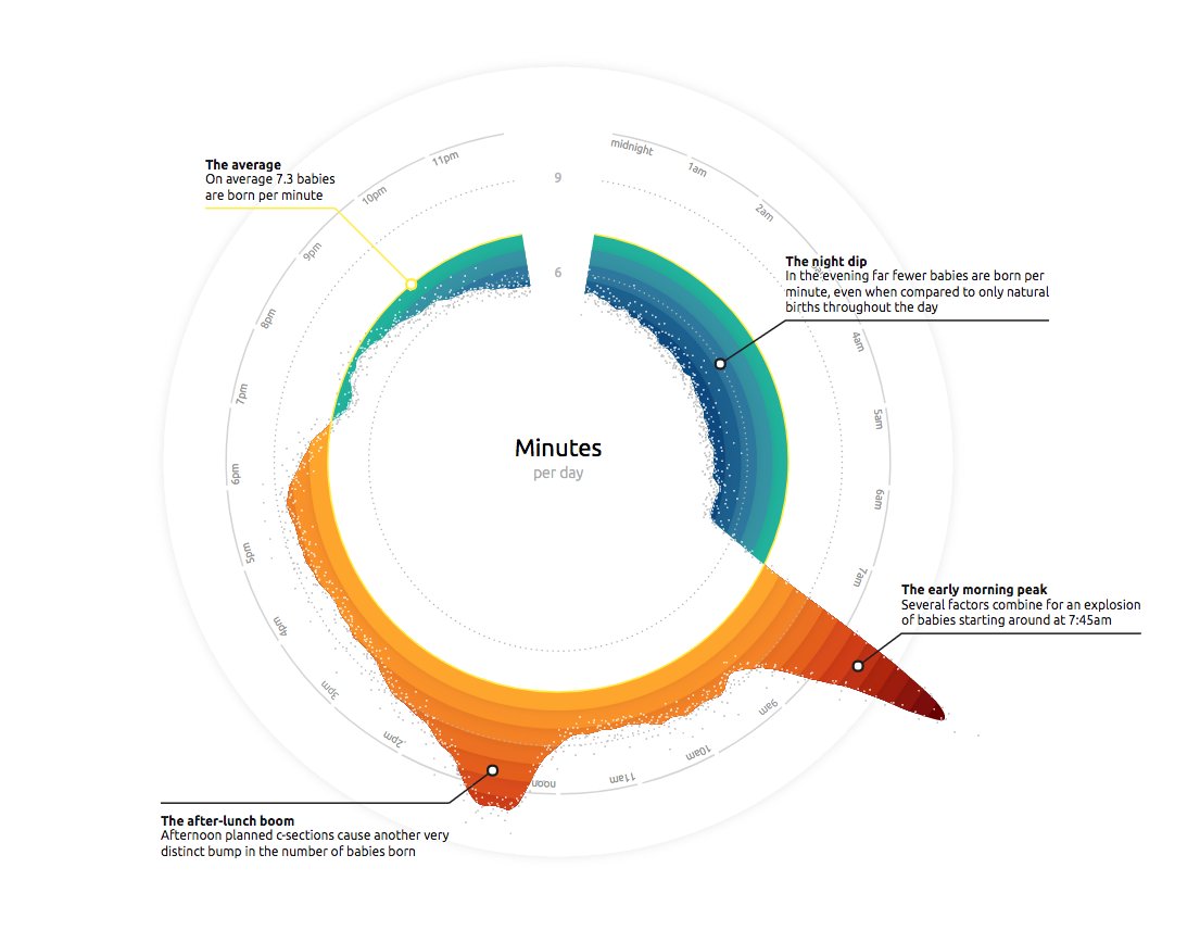 | Przykład sezonowości dobowej stworzony przez Nadieh Bremer |